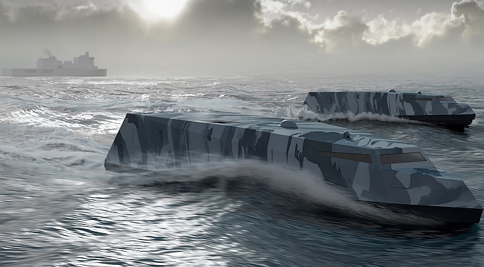 模組化水面載具概念,主要是針對英國國防部陸戰隊介入艇(CIC)的需求。CIC是配合