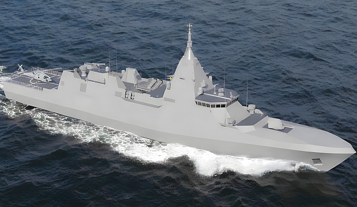 SF3500AAW防空巡防艦的設計為基礎來競標,稱為箭頭140。注意艦體中部兩側以及艦尾兩側都有收放小艇