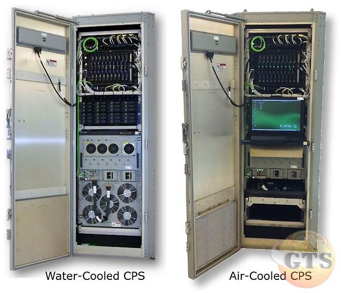 神盾Baseline 9的AN/UYQ-107通用顯示器(CDS),取代了原本的UYQ-70。 神盾Baseline 9在戰情中心的人機介面是與AN/UYQ-107作戰通用顯示系統(Common Display System,CDS),取代了Baselne 6以來引進的UYQ-70顯控工作站。有趣的是,最初神盾系統(Baseline 1∼5)的顯控終端不具備算力,而Baseline 6引進的AN/UYQ-70工作站則擁有自身的處理器、繪圖卡(GPU)和戰術總線接口,兼具運算與顯控功能,後來也擴充成為神盾計算機網路中的運算節點。而到神盾Baseline 9,CDS工作站又回到單純的人機介面角色,顯示後端運算好的戰術圖像以及接收操作人員輸入的指令,所有的運算功能都集中到CPS機櫃的刀鋒伺服器叢集上,而CDS靠乙太網路與後端伺服器連接;因此,神盾Baseline 9的前台工作站又被稱為瘦客戶端 (Thin Client),維修工作比先前UYQ-70時期大幅簡化(如果UYQ-70的顯示器損壞,維修更換時需要動到主機板)。操作人員從任何一個 CDS 終端登入,都可以存取戰系任何功能的畫面(如雷達、導航、反潛等),實現完全的不同工作站點任務交替。 AN/UYQ-107通用處理系統(CPS)機櫃 TI-12的關鍵硬體基礎,使能讓與民間企業機房相同的刀鋒伺服器直接裝上軍艦的先進封裝機櫃 (Advanced COTS Enclosure,ACE)。 過去美國海軍最初引進COTS組件的AN/UYQ-70 ADS時代,海軍想引進商規計算機組件但又無法信任民間主機板能滿足軍規要求, 所以UYQ-70機櫃裡插的單板電腦(SBC)是基於商規現成元器件(如CPU、記憶體等)、專門依照軍方要求開發的「特規品」 ,需要花數年時間開發、只有軍方用戶、只有少數軍用代工廠可以生產,因此價格非常昂貴,而且等產品製程差不多依舊會落後同期 民間市面產品一代以上。這與最初COTS「拿市場現貨、與市場同步」的理想,仍有一大段落差。 因此,後來美國海軍改變COTS策略,不再執著於加固「電腦組件」本身,而是加固「裝電腦的箱子」。因此, 美國海軍開始發展先進COTS封裝(Advanced COTS Enclosure,ACE),開發具備極強隔絕衝擊震動能力以及冷卻能力的機櫃系統, 稱為通用處理系統(Common Processing System,CPS), 能直接將未經軍規加固的伺服器主機裝入運作,並滿足「Grade A」等級的軍規抗衝擊需求 (艦艇中彈、結構變形時,運算仍不能中斷)。如此,美國海軍再也不需要開發只能由少數專業代工廠生產的 特規計算機組件,而是直接購買主流市場上性能足夠的伺服器,讓船艦上計算機的運算處理能力直接跟上矽谷「摩爾定律」的性能升級曲線。 在神盾Baseline 8/TI-08硬體架構時,美國海軍開始在艦上測試最早期的ACE機櫃,稱為通用處理系統第一代(CPS G1);除了經神盾Baseline 8升級 的提康德羅加級神盾巡洋艦之外,也加裝到同時期排定升級為神盾Baseline 7的柏克級驅逐艦,稱為Baseline 7 Phase 1R (Restoration/Refresh)。 在此階段,原本艦上的AN/UYQ-70顯控台以及UYK-43軍規電腦都還留在艦上機房內。 美國海軍先經過多年測試,確認在CPS機櫃裡的非加固商用伺服器在實際作業環境(如風浪惡劣的北大西洋)與飛彈、火砲發射的震動下 的確能繼續穩定運作而不當機。此外,因為這些商業伺服器上執行大量原本從UYK-43軍規電腦移過來、透過模擬器執行的原本神盾軟體核心邏輯, 而當時的軟體模擬器對底層硬體延遲非常敏感,因此美國海軍在TI-08階段花了很多時間調整機櫃內網路交換器(Switch)的優先順序。 經過多年測試、這些問題都得到解決與驗證後,總結所有經驗的CPS機櫃系統得到AN/UYQ-107的標準型號,成為神盾Baseline 9/TI-12硬體架構的 統一算力來源,將UYK-43軍規電腦、UYQ-70工作站等全部移除。 AN/UYQ-107通用處理系統 (Common Processing System, CPS)是一套具備適應性(adaptable)、模組化(modular)且可擴展(scalable)的運算機櫃(computing enclosure),由全球技術系統(Global Technical Systems,GTS)公司為美國海軍海上系統司令部 (NAVSEA) 所研發,用於支持神盾戰鬥系統現代化(AEGIS modernization)以及其他海軍計畫採辦資源經理(Program Acquisition Resource Manager,PARM) 的運算需求。CPS機架與民間的19吋伺服器機櫃規格共通,直接裝上與商規市場相同、未加固(unhardened)的刀鋒伺服器主機。從2012年起,CPS已經部署在美國海軍神盾驅逐艦、巡洋艦與航空母艦上。CPS在完全的開放式架構運算環境 (Open Architecture computing environment,OACE)中提供商用現貨 (COTS) 技術更新,為「任務關鍵型」(Mission Critical)艦載戰鬥系統提供強大且具成本效益的處理能力。CPS具有創新的防護技術, 創新的衝擊與振動隔離系統(Shock and Vibration Isolation,包括在機櫃內部的特殊的緩衝結構與底部的大型彈簧避震器),CPS 即使搭載未加固的COTS硬體(如IBM或HP刀鋒伺服器)的情況下,仍能符合A級任務關鍵需求 (Grade A Mission Critical),例如直接遭遇爆震衝擊時機櫃內的刀鋒伺服器不會直接中斷工作。CPS 結合了易於更新的先進商業運算能力、具適應性的電力與冷卻系統,並具備提供機櫃重心特性化描述 (CG characterization) 的能力。由於刀鋒伺服器在執行神盾系統軟體時發熱量極高,CPS機櫃通常與船艦冷卻水系統(Chilled Water)整合,透過熱交換器直接為電子設備降溫。CPS的機櫃被稱為先進商用現貨機櫃 (Advanced COTS Enclosure,ACE),該機櫃也可單獨提供,用來搭載其他任務關鍵型運算的應用。 CPS機櫃具有精密複雜的冷卻系統,結合內部氣冷循環與外部液冷熱交換,讓伺服器始終處於恆溫與乾燥的環境。使用複雜的雙循環機制是因為 CPS機櫃跟過去軍規機箱一樣必須是密封的,